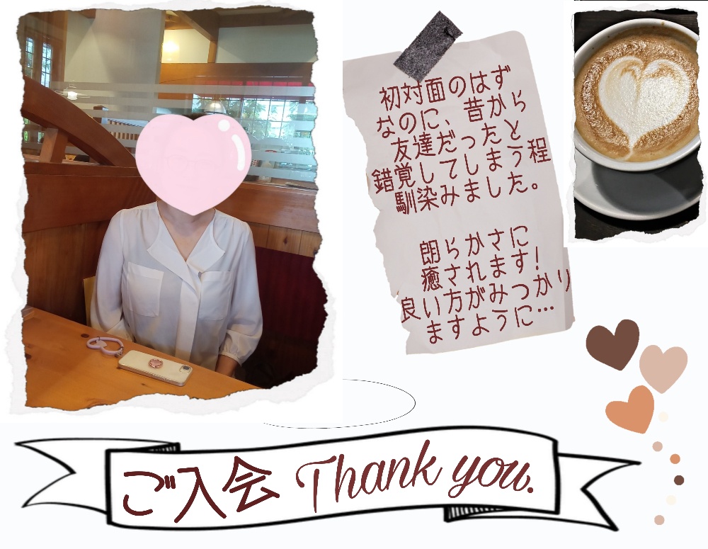40歳台の朗らかな女性のご入会です。会話が上手で落ち着きます。良い方がみつかりますように…